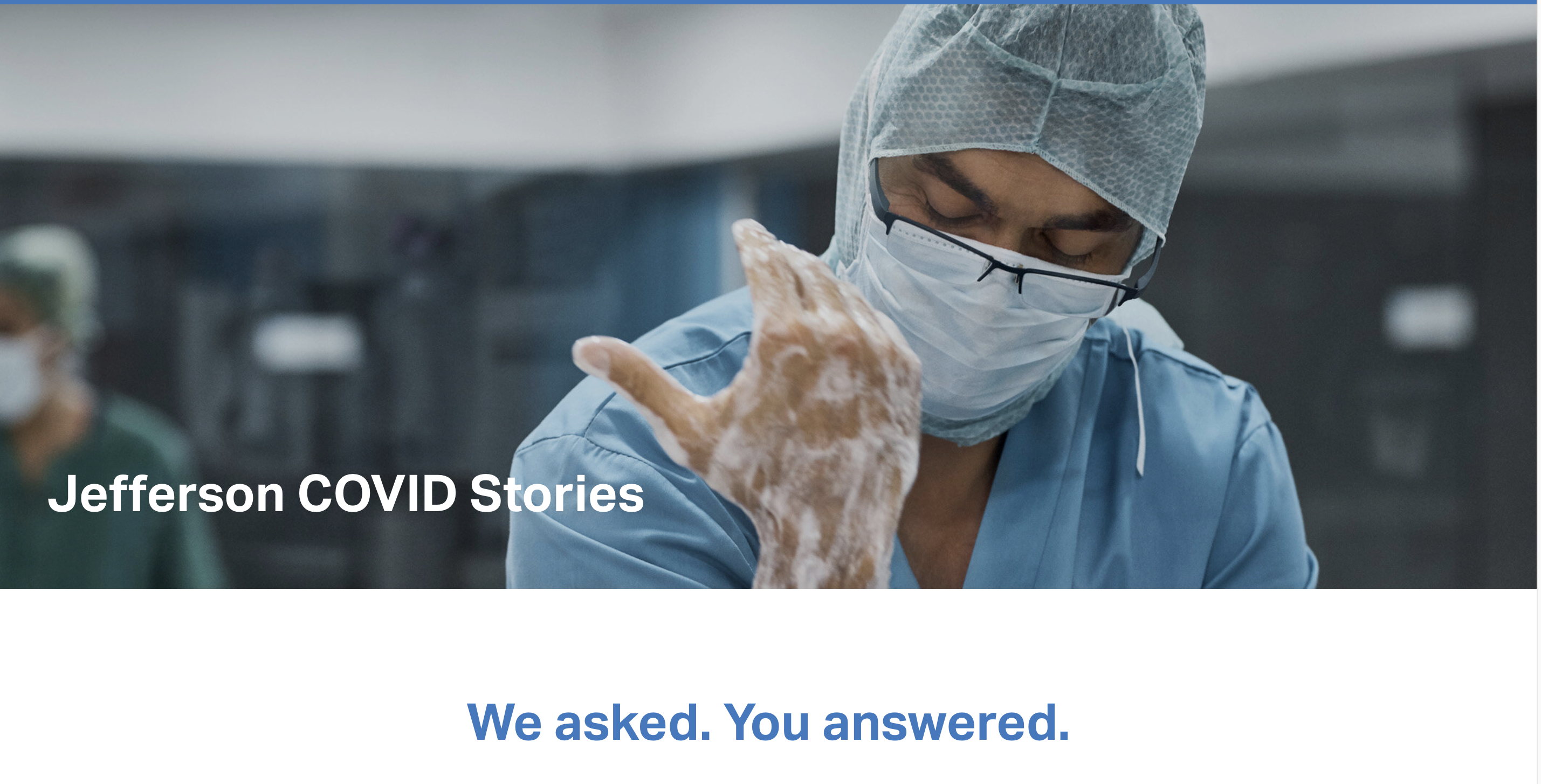 Jefferson COVID Stories is an online platform for members of the Jefferson Health community to share their experiences with COVID and read the experiences of others. It was co-created by Nick Safian and Danielle Snyderman during the heart of the COVID-19 pandemic; for several weeks, various prompts about the pandemic were mailed out: from "Write a pandemic haiku" to "what are some of your biggest fears during this time?" to "Why do you continue to do what you do?" As Safian and Snyderman collected responses, they showcased them on the website. Members of the Jefferson community could go to the website to read the responses of others, and also to respond to the prompts themselves. What the team created was a collection of the "Jefferson COVID experience"–individual unique threads that wove together to create our community's story from that time. The acts of reflecting and reading reflections were very cathartic, empowering, inspiring, and refreshing for people. The team also created a repository--an archive of sorts of our community's real-time reactions to the pandemic. Later on during the pandemic, following the murder of George Floyd, it was clear that the story portrayed on Jefferson COVID Stories would not comprise the whole truth if it did not address the racism so plainly exposed in the U.S. This inequality could not be uncoupled from American story of COVID-19, and by extension, Jefferson's story of COVID-19. Jefferson COVID Stories thus invited members of the Jefferson community to share their experiences with racism. Again the responses were powerful. Select entries from the Jefferson Covid Stories website have since been curated into a special issue of Jefferson's literary journal Evanescent. This journal thus represents a physical archive of these entries that can stand next to the virtual repository that lives on the website.