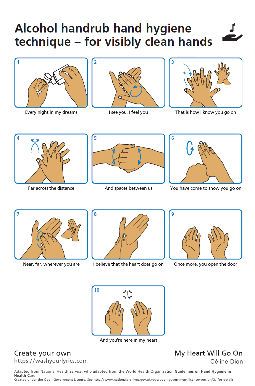 Wash Your Lyrics allows users to generate hand-washing posters that matches lyrics from a song of their choice to each instruction on the poster. BBC interviewed the author on March 11, 2020, for the overwhelming popularity that his website reached in just three days.